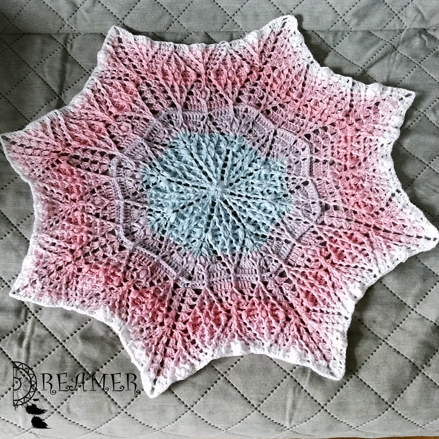 Oktagon Sentemeco można zrobić zarówno jako mandala na obręczy, kocyk jak i obrus.