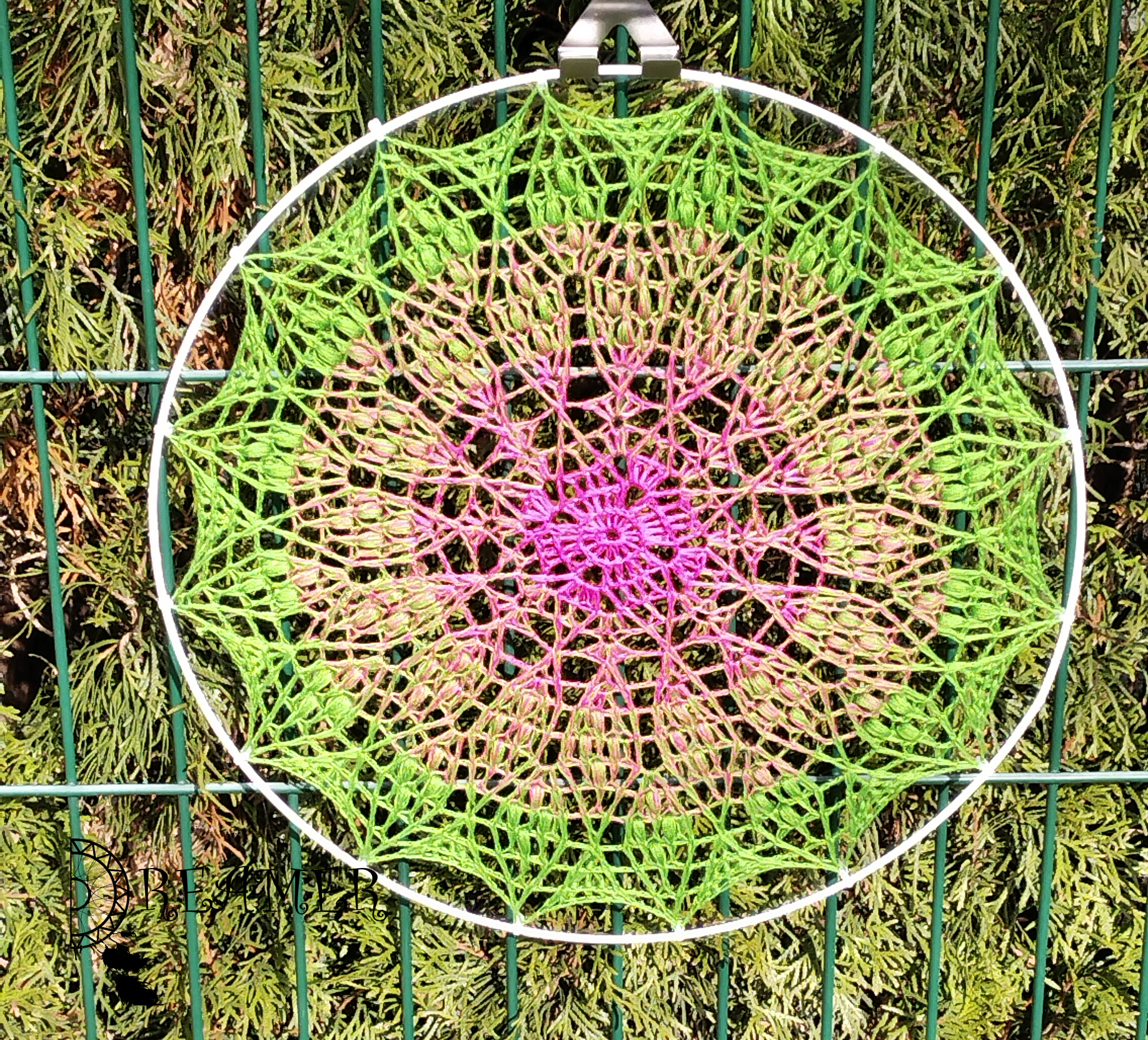Do serii SEKRETO nie mogło oczywiście zabraknąc i mandali 🙂 Wersja mniejsza, na mniejsze obręcze .Powstała z włóczki bawełna z akrylem , szydełko nr 2,5 metraż ok. 200m, obręcz 40 cm,