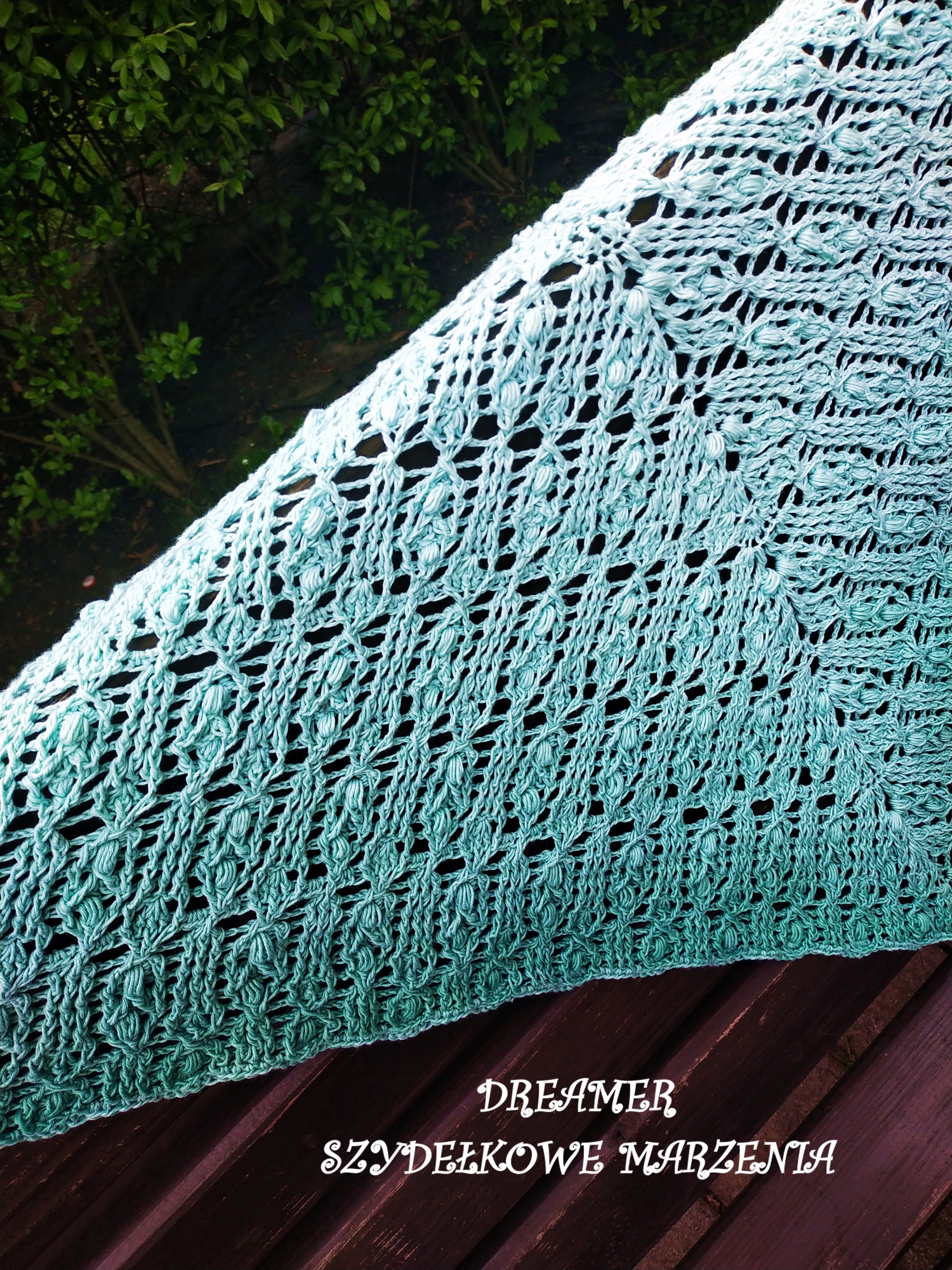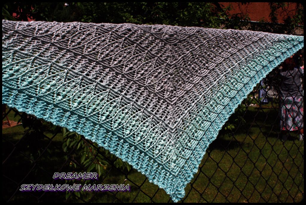 Chusta powtarzalna, szybko się ją robi a efekt końcowy jest cudowny 🙂 Idealny wzór na ciepłe, letnie wieczory