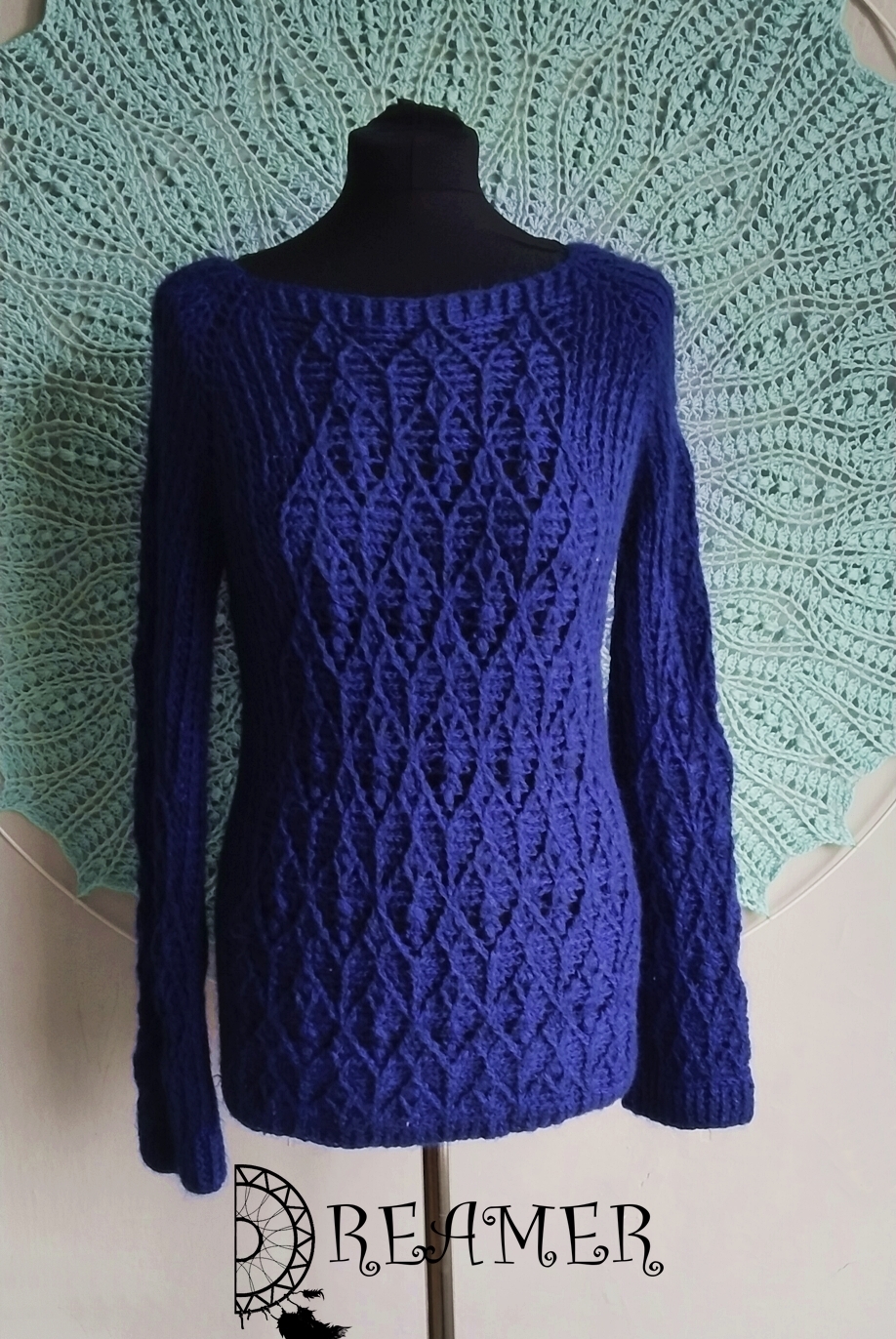 Wzór na Ekzisti sweater jest uniwersalny, to znaczy że możemy go zrobić w wersji z długim lub krótkim rękawem, w wersji z motywem rozszerzanym jak i jeden na drugim. Także każdy w nim znajdzie coś dla siebie 🙂