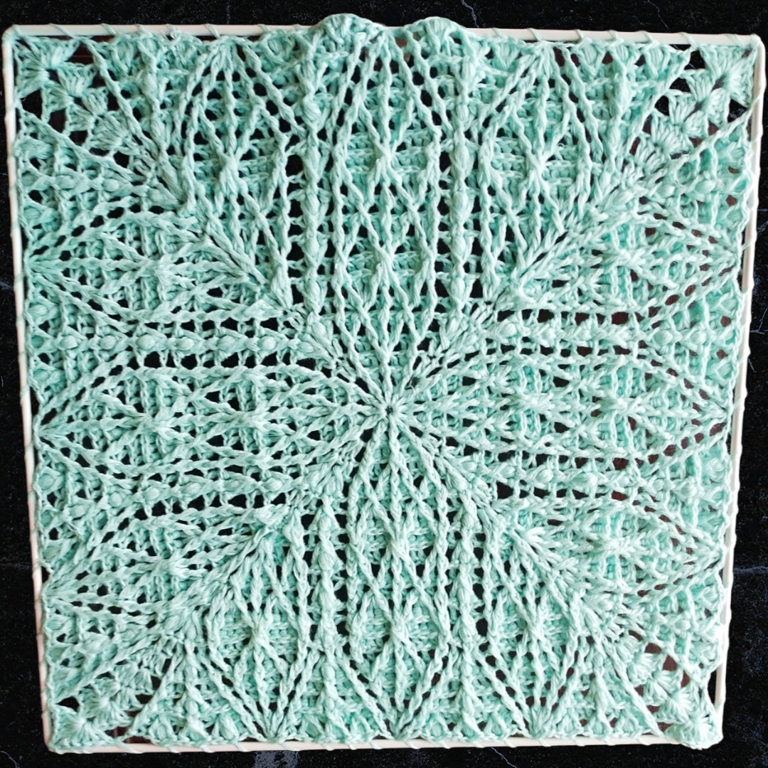 Moja wersja powstała z włóczki bambus z bawełną, o metrażu ok 210m, szydełko nr 2,5 , bok 30 cm.