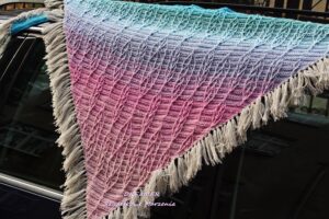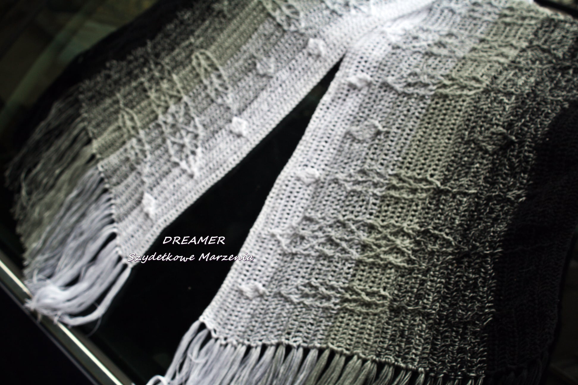 Drugi z serii Dream Feathers szal robiony od długości na szerokość. Przy nim była próba cierpliwości zaczynając od miliona oczek :D.